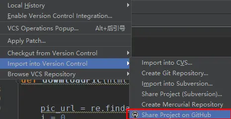 点击VSC ——》Import into Version Control ——》Share Project on Github