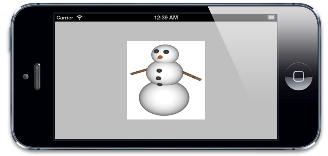 你可能已经注意到了我们的雪人看起来有点。。。胖 ==! 我们加载的图片并不刚好是一个方的,为了适应这个视图,它有一点点被拉伸了。在使用UIImageView的时候遇到过同样的问题,解决方法就是把contentMode属性设置成更合适的值,像这样: