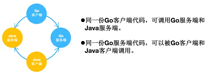 现在的 dubbo-go 已经能够跟 Java 版本做比较好的融合互通,同时 dubbo-go 自身也是一个完成的 Go 语言 rpc/ 微服务框架,它也可以脱离 java dubbo 来独立使用。