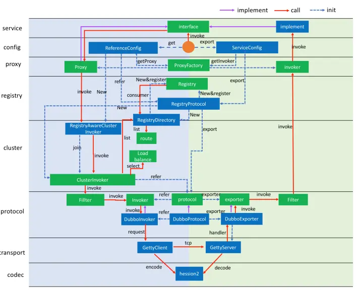 dubbo-go 主项目,我们重构的这一版主要是基于 Dubbo 的分层代码设计,上图是 dubbo-go 的代码分层。基本上与 Java 版本 Dubbo 现有的分层一致,所以 dubbo-go 也继承了 Dubbo 的一些优良特性,比如整洁的代码架构、易于扩展、完善的服务治理功能。