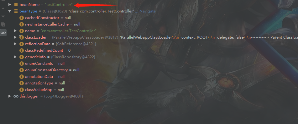 第二步:因为我测试的时候只写了个TestController,所以我们这里主要是分析TestController这个类,我直接跳到解析这个类的步骤来了,可以看到beanType这个变量的值,也就是这个类的相关信息