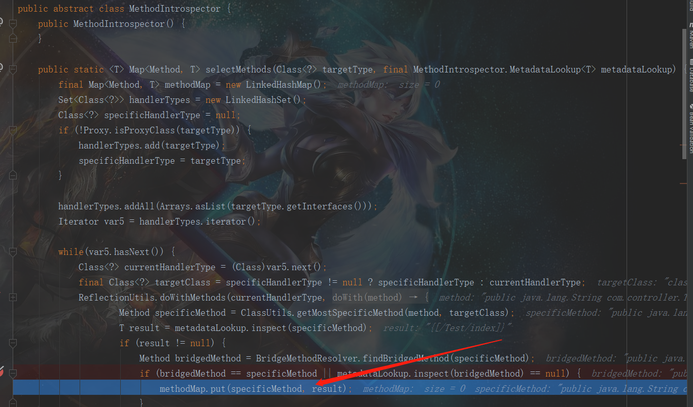 到这里我们已经得到了我们想要的东西了,所以接下来就是将url跟method映射保存起来。我debug进入到了下图这个方法