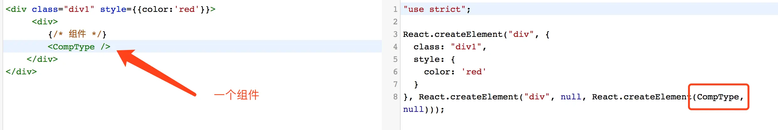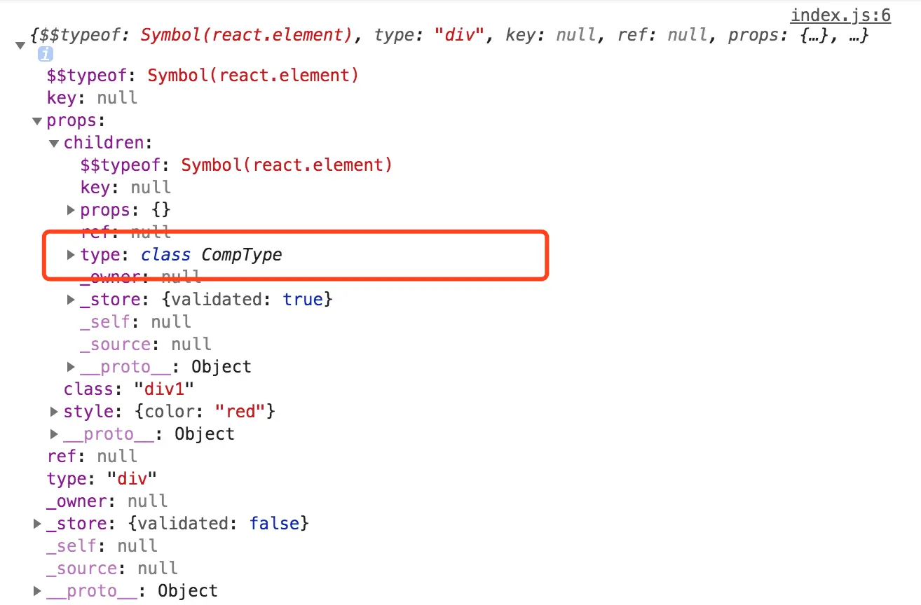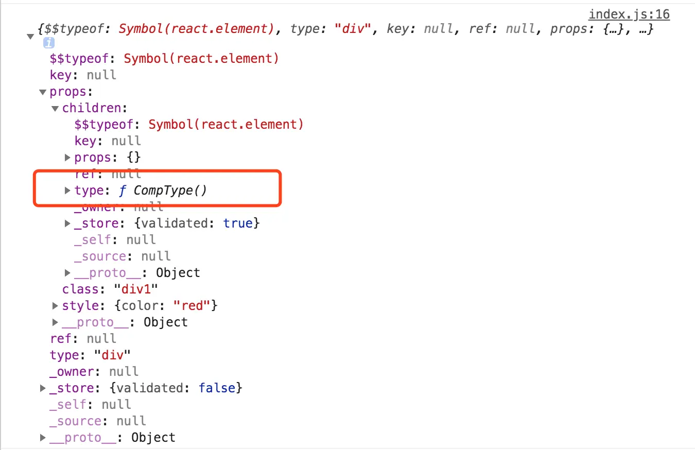 CreateElement在处理JSX语法的时候,,遇到一个组件,返回的对象中: Type就不是字符串标签名了,而是一个函数(类),但是属性还是存在PROPS中.