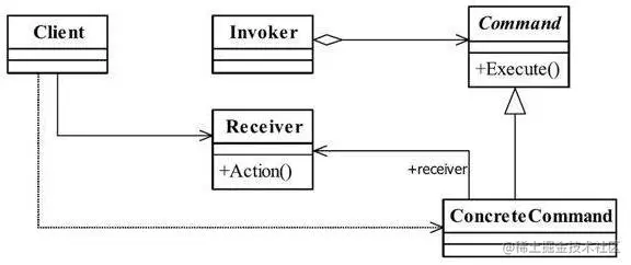 - ConcreteCommand(具体命令角色):命令接口实现对象,是“虚”的实现;通常会持有接收者,并调用接收者的功能来完成命令要执行的操作。