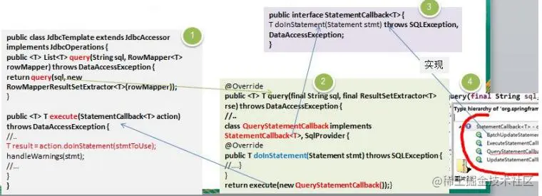 - StatementCallback类似于命令接口(Command)。