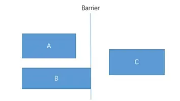 假设有3个控件ABC,C在AB的右边,但是AB的宽是不固定的,这个时候C无论约束在A的右边或者B的右边都不对。当出现这种情况可以用Barrier来解决。Barrier可以在多个控件的一侧建立一个屏障,如下所示: