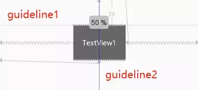 guideline1为水平辅助线,开始位置是距离顶部50dp,guideline2位垂直辅助线,开始位置为屏幕宽的0.5(中点位置),效果如下: