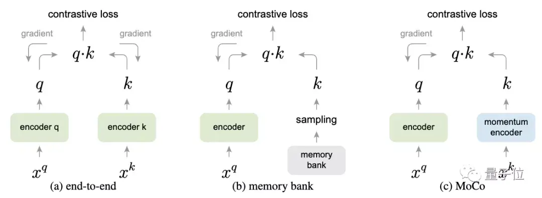 Facebook AI研究院的何恺明团队受此启发,采用对比损失(constrative loss)法,即从图像数据中采样键(或令牌),并由经过训练、与字典相匹配的编码器表征。