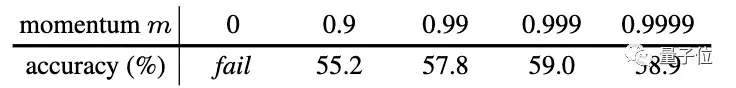 在实验中,研究人员还发现,相对较大的动量(m=0.999)会比较小的动量(m=0.9)要好得多。这表明缓慢演变的键编码器是利用队列的关键所在。