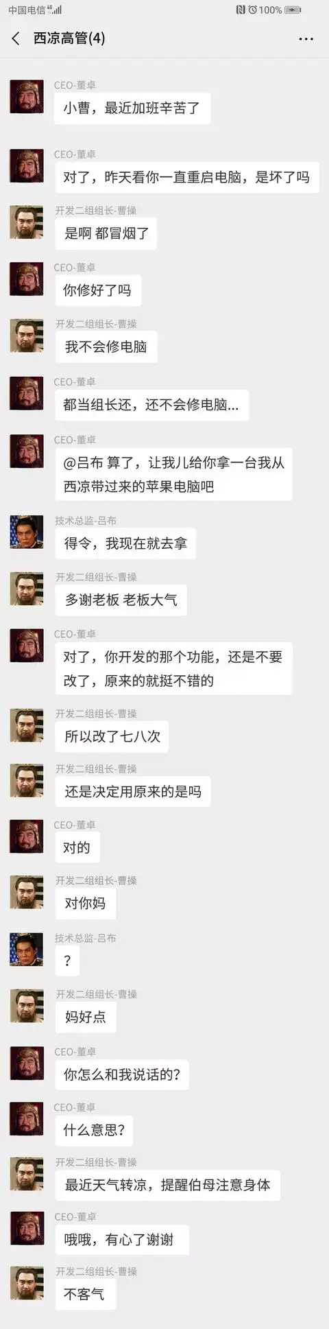 曹操和董卓的谈话,在西凉高管群里,炸了锅