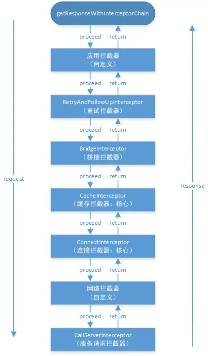 上一篇文章OkHttp 3.14.x 源码解析-执行流程我们分析了OKHttp的整体执行流程,也从中提到了OKHttp会调用各拦截器来获取响应数据,但是并没有展开来讲,所以这篇文章我们将来详细分析各个拦截器的职责。