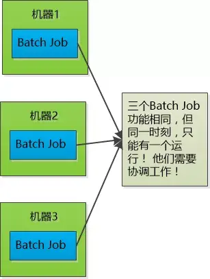 2 小王的Master选举小王邮件中说的是三个Batch Job的协调问题,这三个Batch Job 部署在三台机器上,但是这三个Batch Job同一个时刻只能有一个运行,如果其中某个不幸down掉,剩下的两个就需要做个选举,选出来的那个Batch Job 需要“继承遗志”,继续工作。