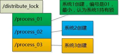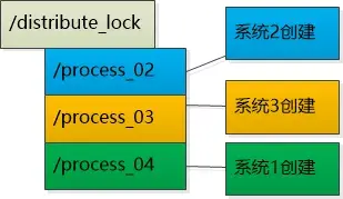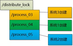 如果让这些系统在注册中心的/distribute_lock下都创建子节点, 然后给每个系统一个编号,会是这个样子: