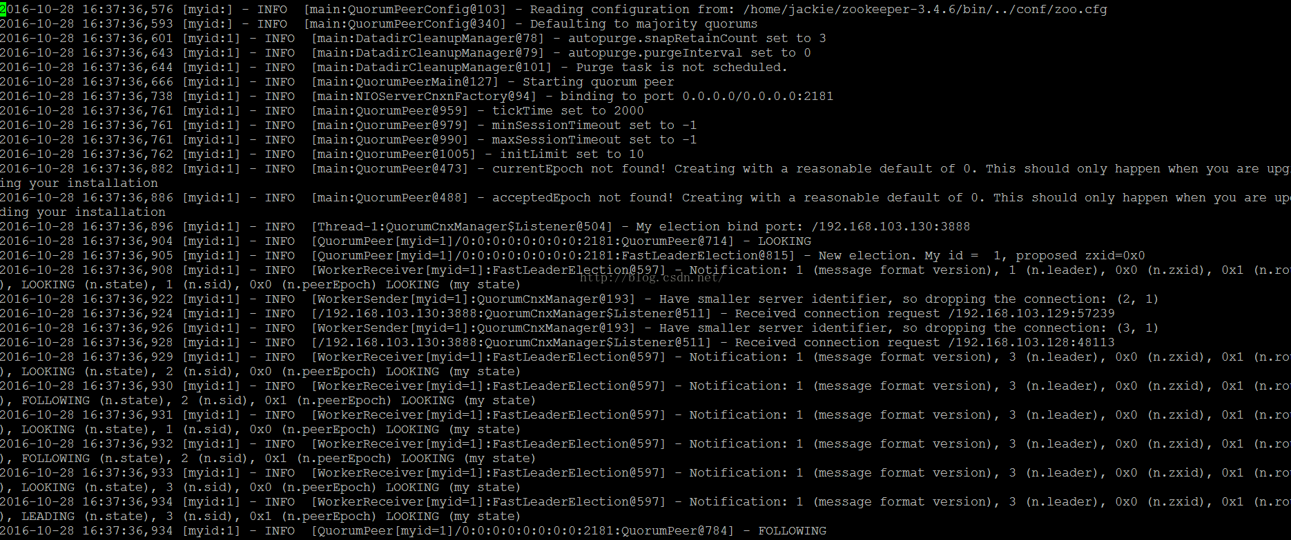 (4)Server状态:LOOKING,FOLLOWING,OBSERVING,LEADING