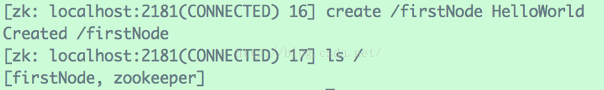 例如,在根节点下新建一个名为“firstNode”节点,存储的数据为“HelloWorld”: