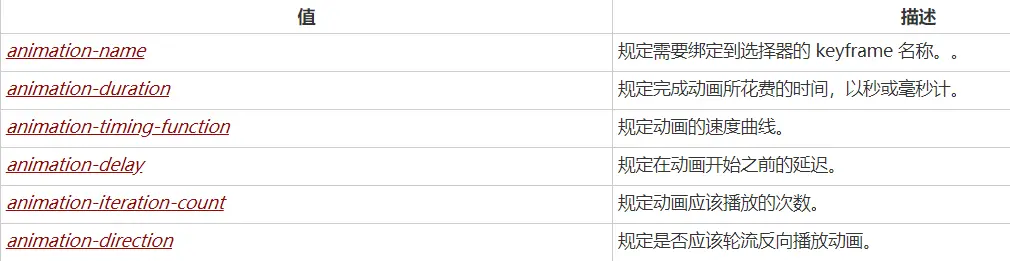animation-name:keyframename ;(规定需要绑定到选择器的 keyframe 的名称)