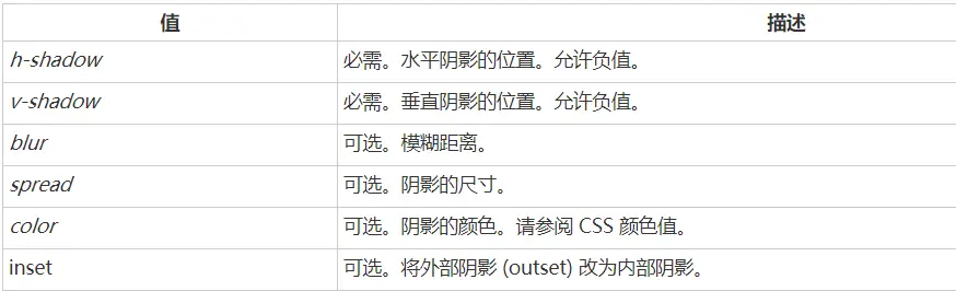 box-shadow: h-shadow v-shadow blur spread color inset;(中间利用 “,” 制造两个阴影,再运用0% 50% 100%的动画使阴影扩散变大 颜色变浅,从而模仿水波扩散的效果)