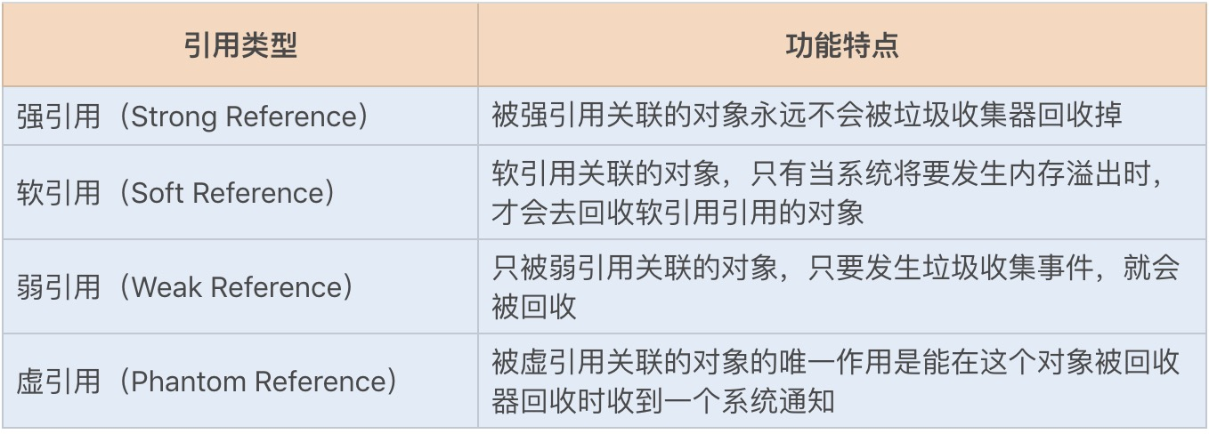 引用计数法:通过一个对象的引用计数器来判断该对象是否被引用了。当对象被引用,引用计数器就会加1,当引用失效,计数器减1,当对象的引用计数器为0时,就表示该对象不再被引用,可以被回收。计数算法实现简单,效率也高,但是存在对象之间相互循环引用的问题。