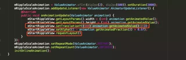 嗯,不卡才怪呢,之前的同学为了实现这个无限循环的波纹动效,通过自定义一个圆点view,然后通过属性动画改变这个圆点的宽高、透明度,然后在动画变化时requestLayout,这个效果是实现了,但是性能是极差的,属性动画这些操作都是主线程去执行的 在高端机型是可能性能hold住但是拉美的手机上有的直接就扛不住了,看来需要压榨一下我们的代码了。