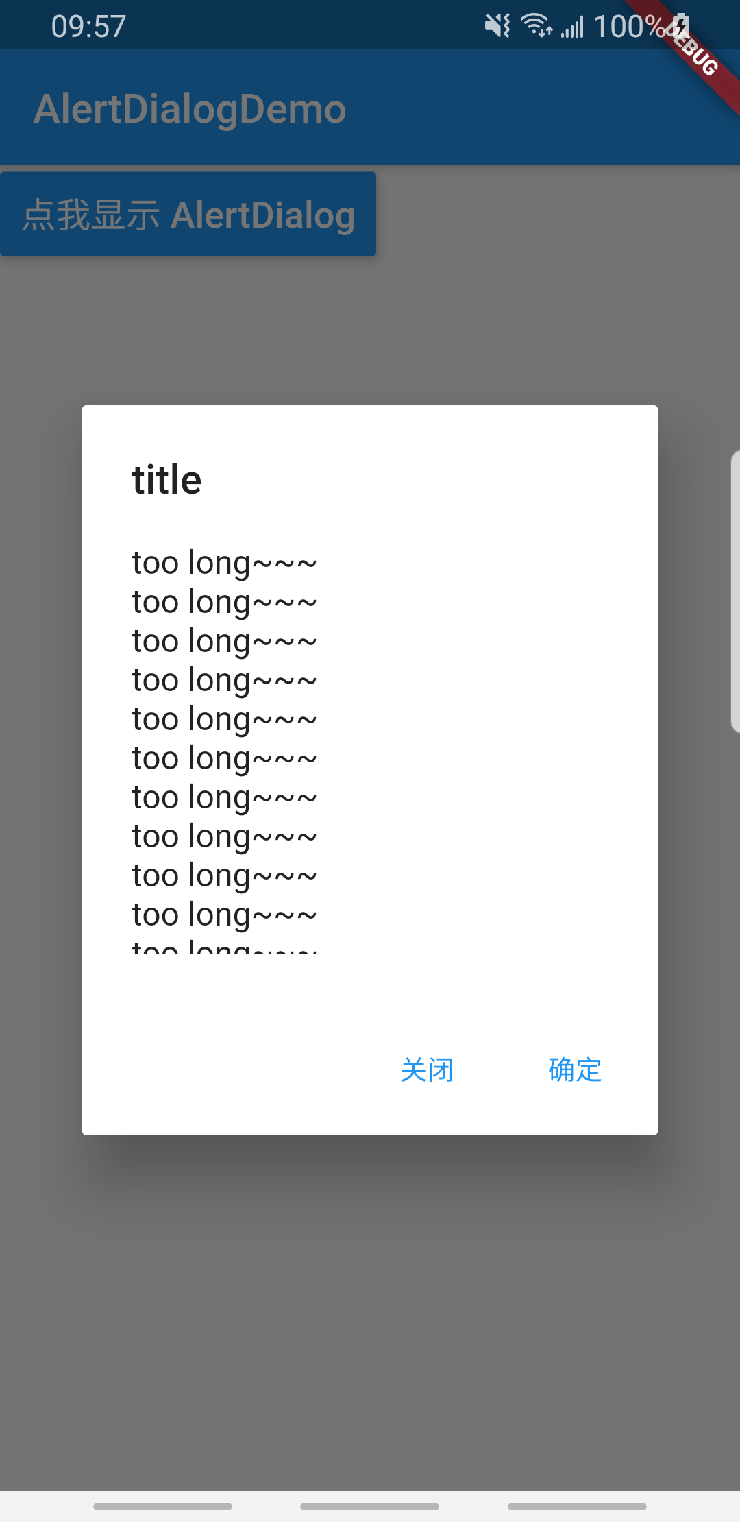 通常使用SIngleChildScrollView来包裹过多的元素,这是因为alertDialog是使用child的大小来调整自身大小 它的显示是通过showDialog方法实现