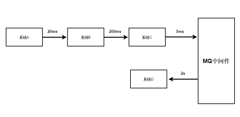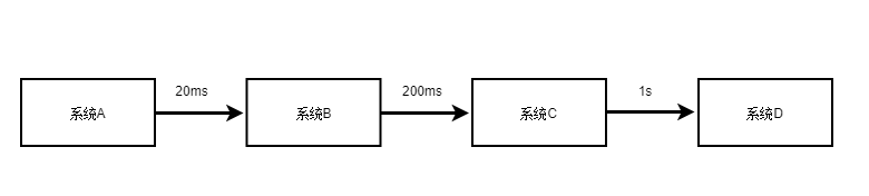 假设你有一个系统调用链路,是系统A调用系统B,一般耗时20ms;系统B调用系统C,一般耗时200ms;系统C调用系统D,一般耗时2s