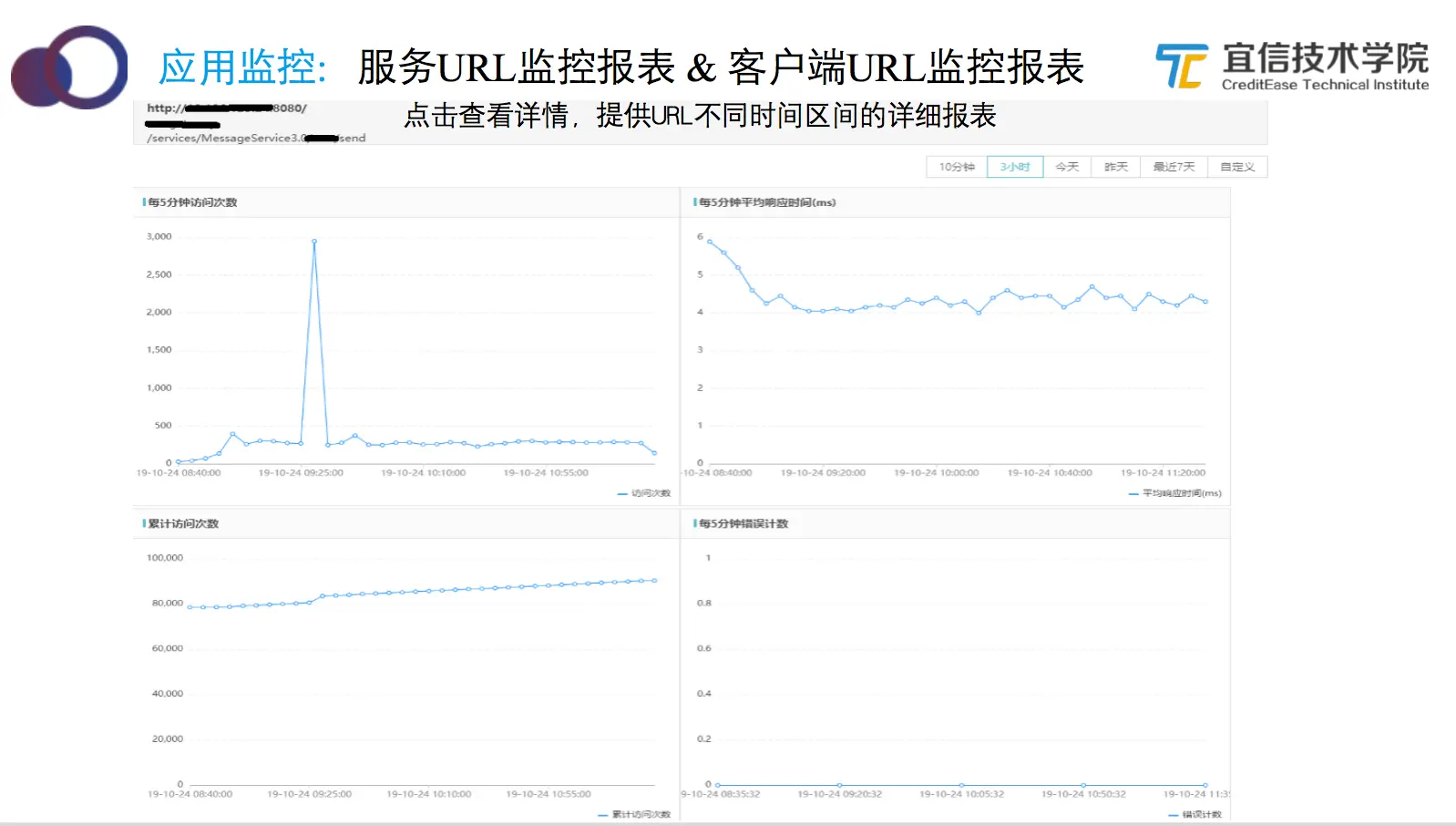- 可以直观地看到该应用中所有服务URL的访问计数、平均响应时间、累计访问计数、累计错误计数、成功率等指标在选定时间区间内的统计数据。