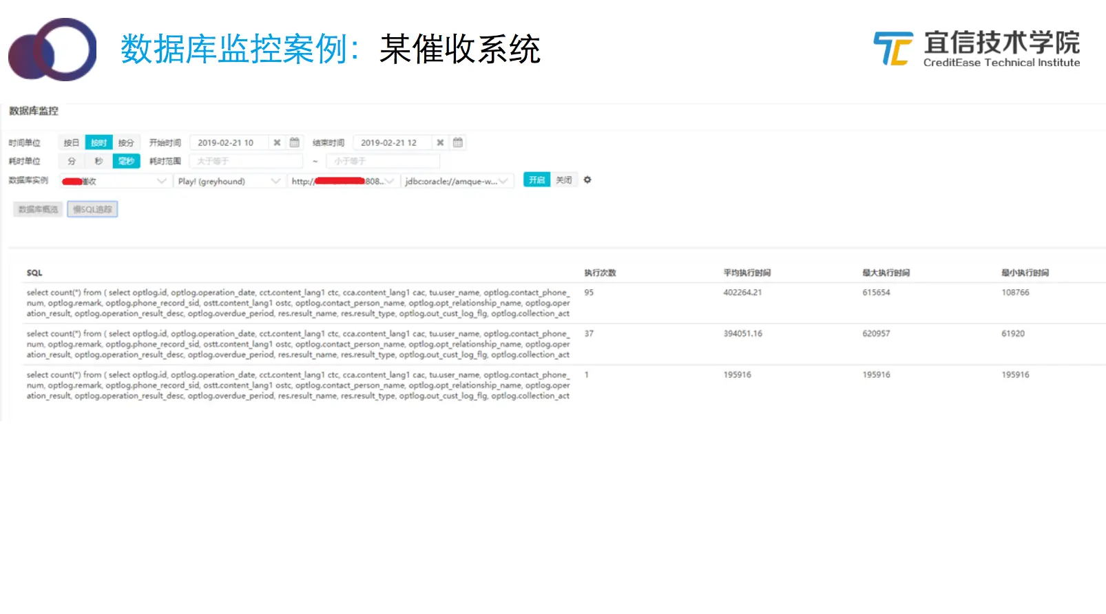 通过某外购催收系统的数据库监控案例来说明数据库监控的使用方法。