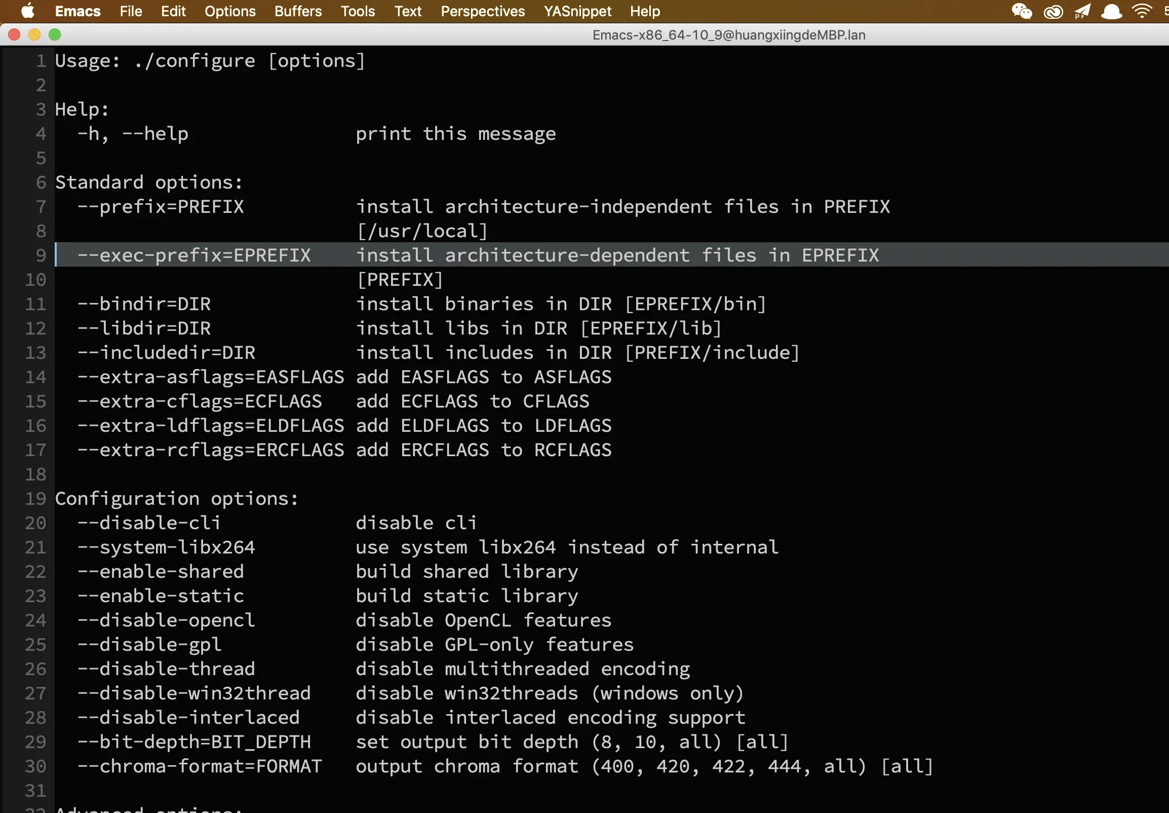 ./configure --help >> x264_help.txt