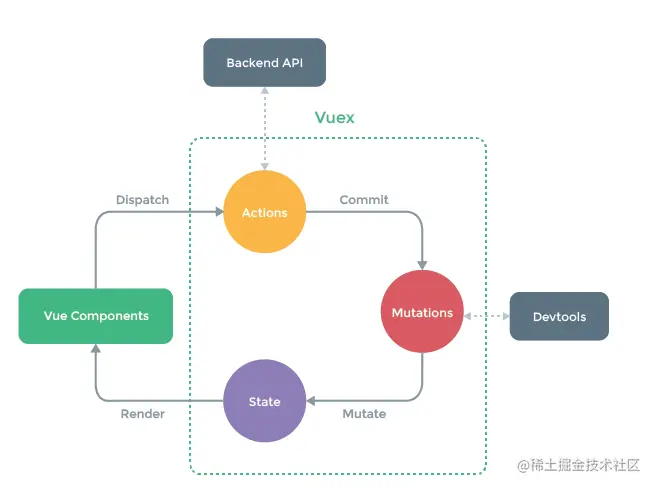 通过官方文档提供的流程图我们知道,vuex的工作流程