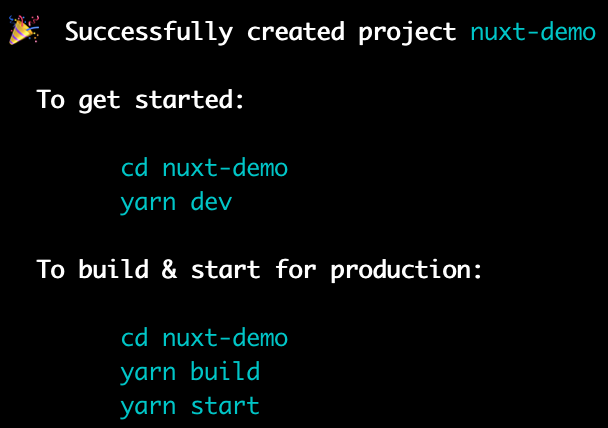 经过上述过程,你已经有了一个基础的Nuxt项目,可以通过下面命令进一步开始本地开发和部署: