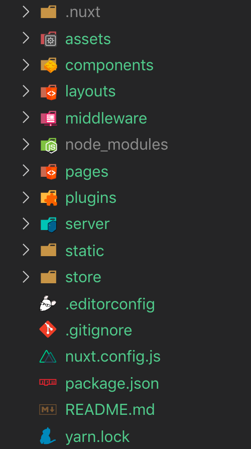 通过create-nuxt-app脚手架工具生成的项目结构,一般是这样的: