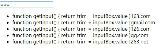 function getInput() { return trim = inputBox.value } result = getInput() + postfixList[i]