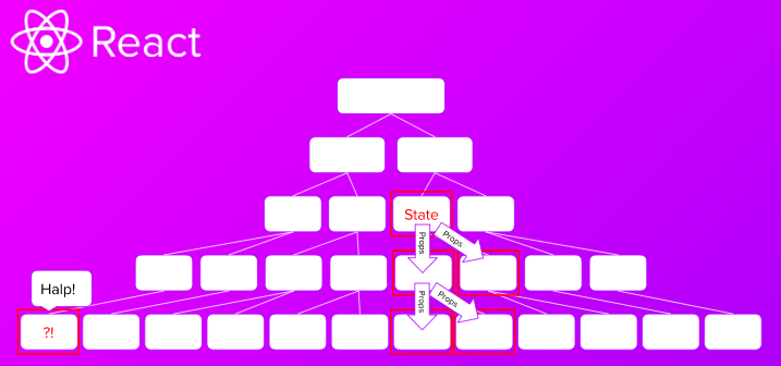 在这个案例当中,我们需要将state从顶层的应用通过各个中间组件传递到最底层的组件,即使中间的那些组件不需要这个state。这一繁琐而耗时的过程被称为prop drilling。