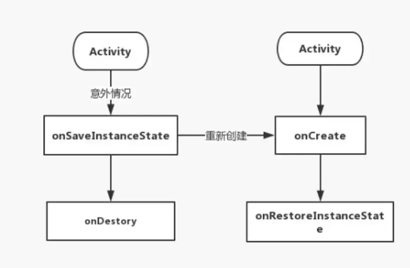 发生条件:异常情况下( 系统配置发生改变时导致 Activity被杀死并重新创建、资源内存不足导致低优先级的 Activity 被杀死)