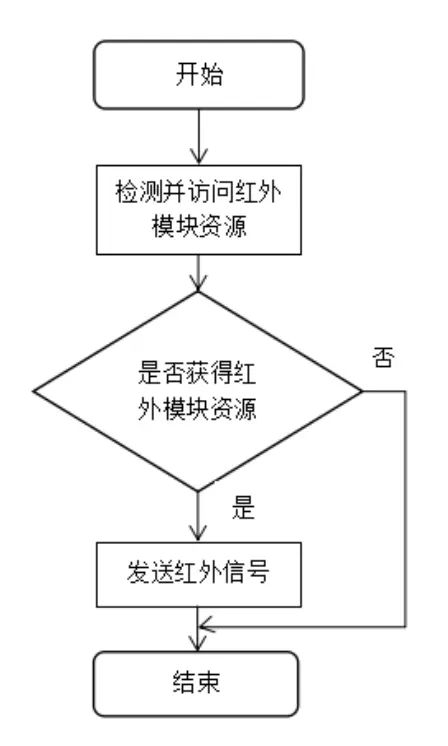 遥控控制模块的选择:方案1,使用红外遥控。虽然红外的遥控的控制距离只有10m左右,无法绕过障碍物进行遥控。但发射红外遥控信号的手机就架在小车上,可以将手机的红外发射器和红外接收器放在一块固定住。虽然并不是所有的安卓手机都有红外发射器,但都有3.5mm的耳机接口,红外信号的38kHz频率在音频范围内,可以用耳机接口外接的红外发光二极管发射红外遥控信号[6];方案2,可以用蓝牙来完成对小车的控制,小车上需要配备蓝牙模块与手机进行配对通信。但并不是所有的手机都支持蓝牙,早期的一些安卓智能手机就不支持蓝牙。相比蓝牙模块,红外模块成本更低。所以采用方案1。
