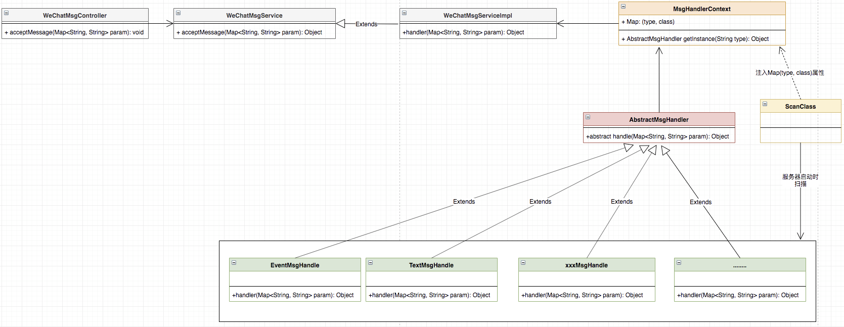 策略模式 DemonsZ 2019-11-20 390 阅读1分钟 某功能模块的功能可以支持文字、图片、语音和事件等约10中交互方式。但在开发该功能模块初期因为希望尽快开发功能而未考虑到SRP(单一职责原则)和OCP(开闭原则)且可扩展性也不好。旧方案:使用switch和枚举交互类型对用户行为进行判断后执行相应的逻辑。 新方案:使用策略模式重构该功能模块,符合SRP和OCP设计原则,功能模块解耦,提高可扩展性。