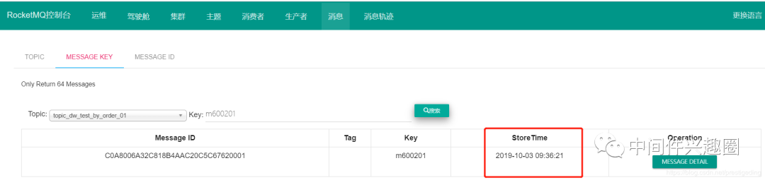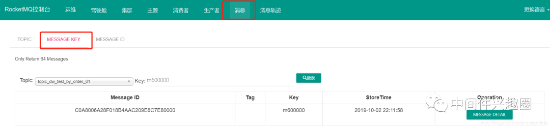 首先我们先验证升级之前的消息是否能查询到,那我们还是查找key 为 m600000 的消息,查找结果如图所示: