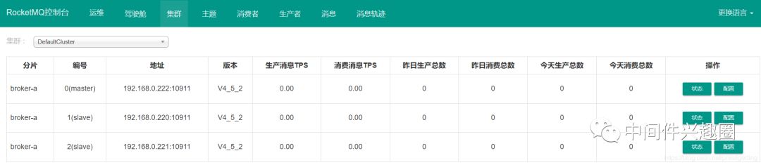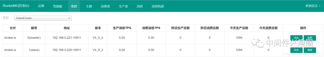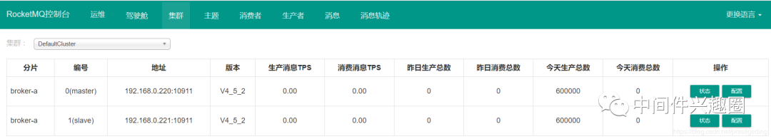 如果启动成功,则在 rocketmq-console 中看到的集群信息如下: