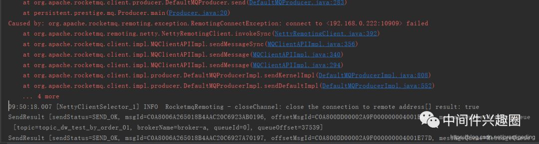 在消息发送的过程中,去关闭主节点,其截图如下: