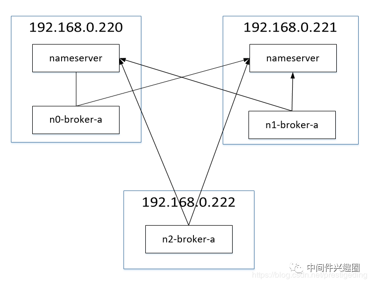 1brokerClusterName = DefaultCluster 2brokerName = broker-a 3brokerId = 1 4deleteWhen = 04 5fileReservedTime = 48 6brokerRole = SLAVE 7flushDiskType = ASYNC_FLUSH 8brokerIP1=192.168.0.221 9brokerIP2=192.168.0.22110namesrvAddr=192.168.0.221:9876;192.168.0.220:987611storePathRootDir=/opt/application/rocketmq-all-4.5.2-bin-release/store12storePathCommitLog=/opt/application/rocketmq-all-4.5.2-bin-release/store/commitlog13autoCreateTopicEnable=false14autoCreateSubscriptionGroup=false
