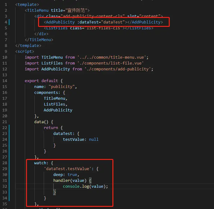 Vue watch监听对象数据 hyxLJJ 2019-11-20 291 阅读1分钟 场景描述:现在有两个组件,一个父组件,一个子组件。父组件中有一个对象数据,父组件对其进行监听,然后将父组件的这个数据对象传到子组件中。然后子组件对该对象数据进行改变,父组件能够监听到吗?能够监听到的。原理:Vue传递对象数据的时候传递为地址,当该子组件对其数据进行更改时,watch同时能够监听到数据的变化,做出相应的响应。代码:
