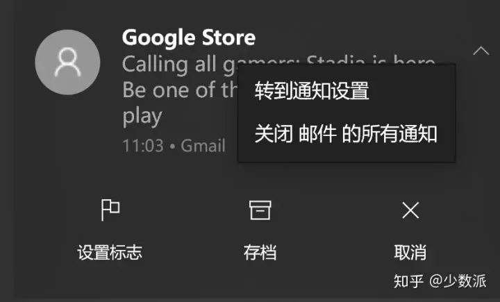 如何快速关闭扰人的右下角通知一直是 Windows 10 用户体验中的一个痛点。在新的 1909 更新中,微软在应用通知的右上方增加了一个设置按钮。如果你不希望收到这个应用推送的通知,可以直接选择关闭该应用的所有通知,不需要进入通知设置里去关闭,比之前方便了不少。