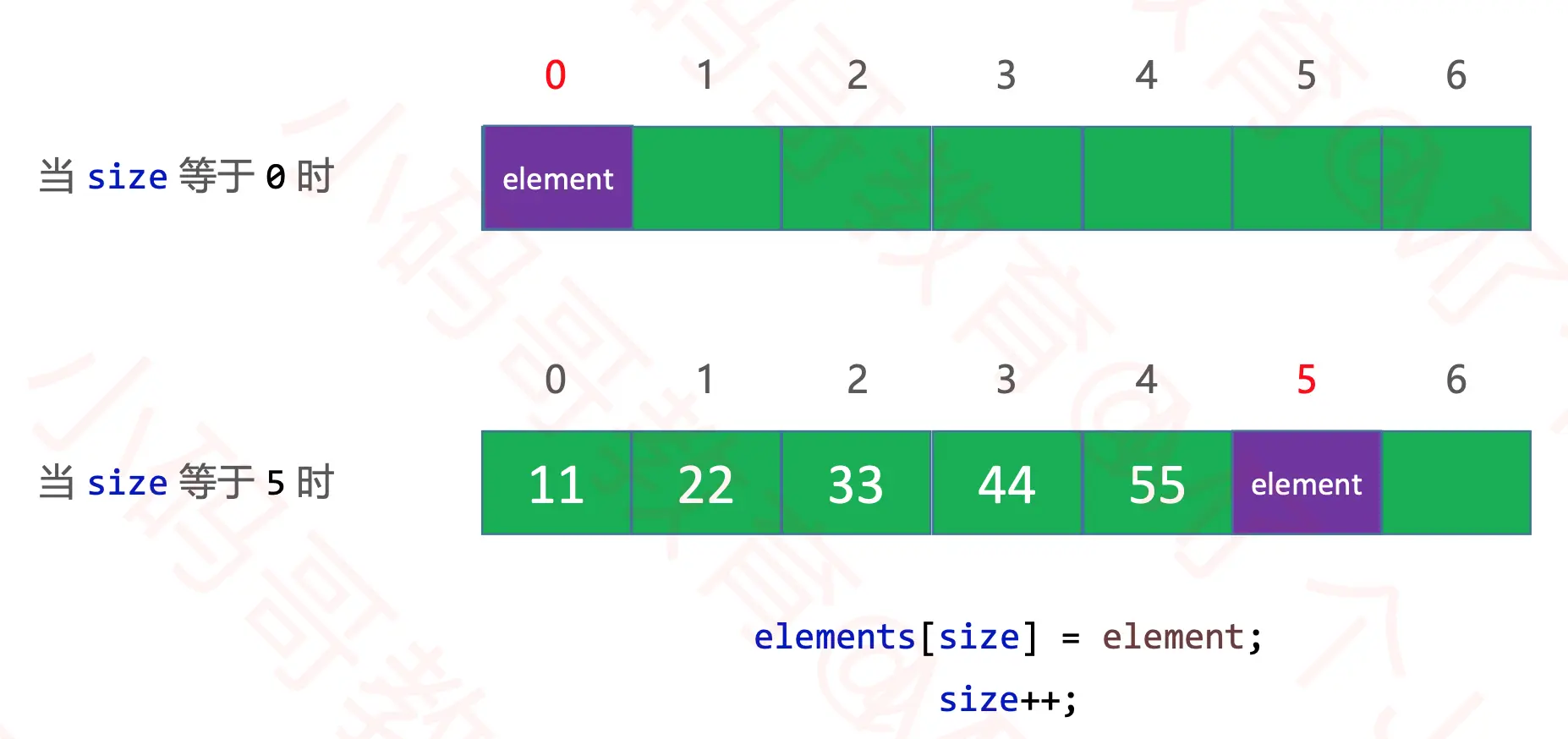 - 我们知道, 每当数组添加新元素时, 都会在数组最后一个元素的后面添加新元素
