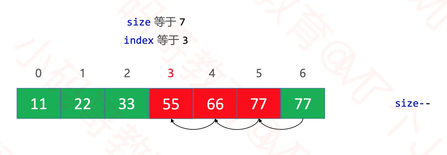 3的元素时, 只需要将后面的元素向前移动, 然后在去掉最后一个元素,size减1即可