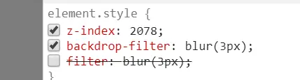 css新特性backdrop-filter的用法 黎大仙 2019-11-20 851 阅读1分钟 之前项目想搞一些骚东西,弄个毛玻璃效果.发现了一个css的属性 filter,可以做到模糊的效果,但是发现一个坑爹的情况 妈耶,结果用在背景上的时候连想熬突出显示的本体都不见了 那就没意思了 后面通过 '张鑫旭'的博客,发现了一个之前不知道的新的css属性 backdrop-filter,可以完美到达背景毛玻璃的效果. 用法和filter是几乎完全一致的 这样就完美的达到背景模糊的毛玻璃效果了,只需要一行css代码就完成 ,舒服.所以还是要经常关注大佬的博客,慢慢学习积累.>_<