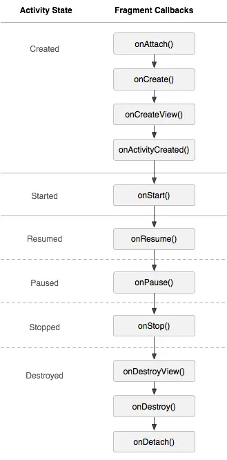 - onActivityCreated(Bundle):当Activity的onCreated方法返回时调用