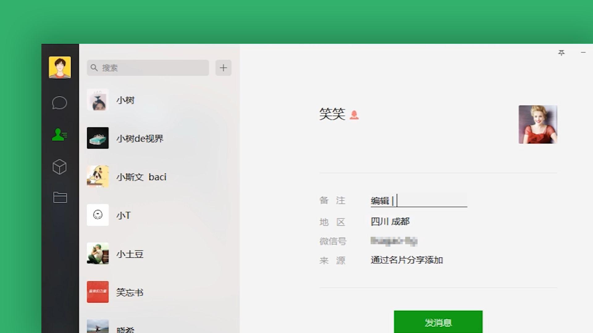 如果你在手机上给联系人给备注,特别是想给一大把人改备注,是这样的;而在电脑端,点击通讯录图标,鼠标滑轮上下随便滑动,点击一个联系人,点击备注输入框,键盘打字明显快很多,然后回车即可。