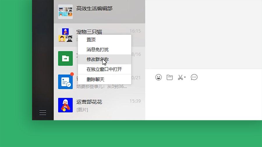 吃饭拉个群、薅羊毛拉个群、谈合作拉个群,遇上几个群聊狂魔,你一天就能有好几个群。想给它们归类命名怎么办呢?手机上,需要进群、点击右上角的三个点,修改群聊名称;电脑上,你只需要单击右键,重命名,而且,想退出也是非常方便。