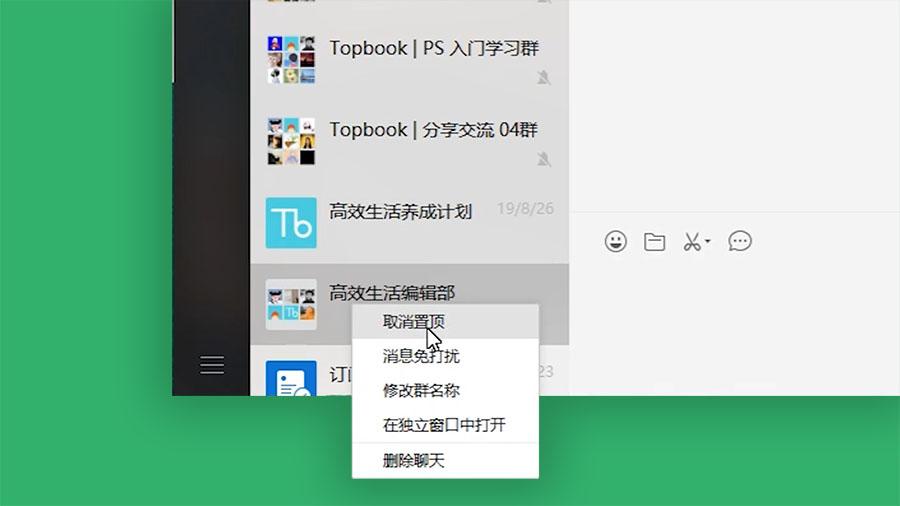 如果微信办公让你快哭了,最好多多用用这个置顶功能。在手机上置顶聊天是这样的;而在电脑上,你只需要单击右键,选择置顶或取消置顶,即可快速搞定。