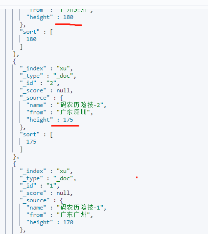 ElasticSearch排序用"sort"字段来实现,比如按照身高"height"从高到低排序: